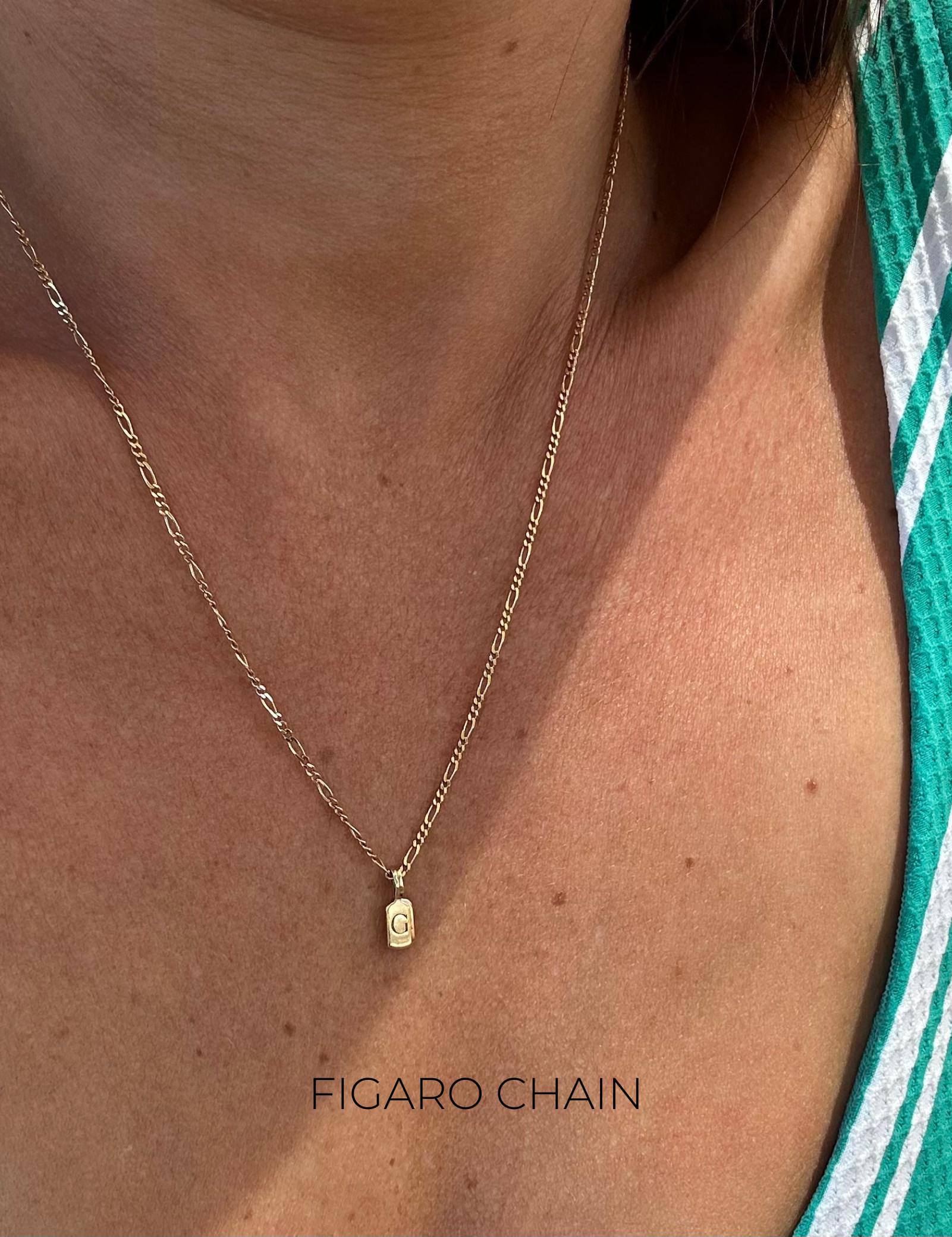 Alternatively, you may opt for the Figaro Chain, another sophisticated choice. Available in 40cm or 45cm lengths without an extension. It features a thickness of approximately 1.5mm, striking a balance between durability and refined style. The combination of the Luna Letter L charm with the Figaro Chain will result in a gold weight ranging from approximately 1.95 to 2.25 grams which are higher due to the chain's specifications.
